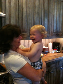 It's getting hot out so instead of turning on expensive ac, we let the boy go au natural. Not sure how to spell that.